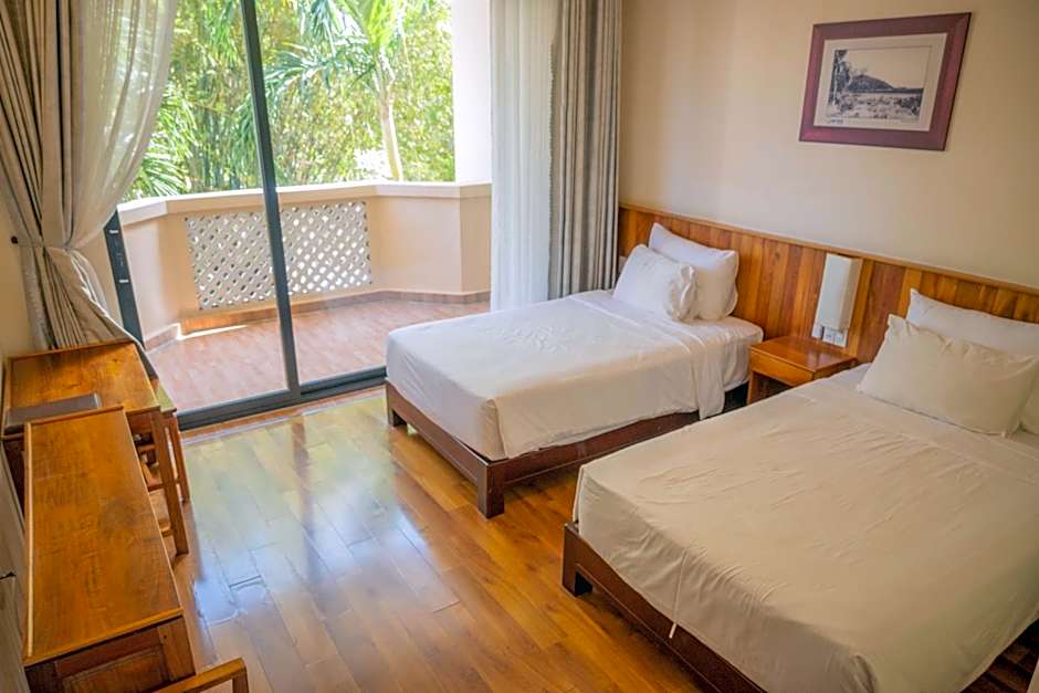 Guest rooms feature free toiletries and easy access via elevator, with upper floors reachable by elevator. Balconies or terraces offer garden or water views, completing a breezy setup just steps from the sand. The address sits right on Tran Hung Dao Street, putting the private beach and garden surroundings within easy reach for a playful, sun-soaked stay.